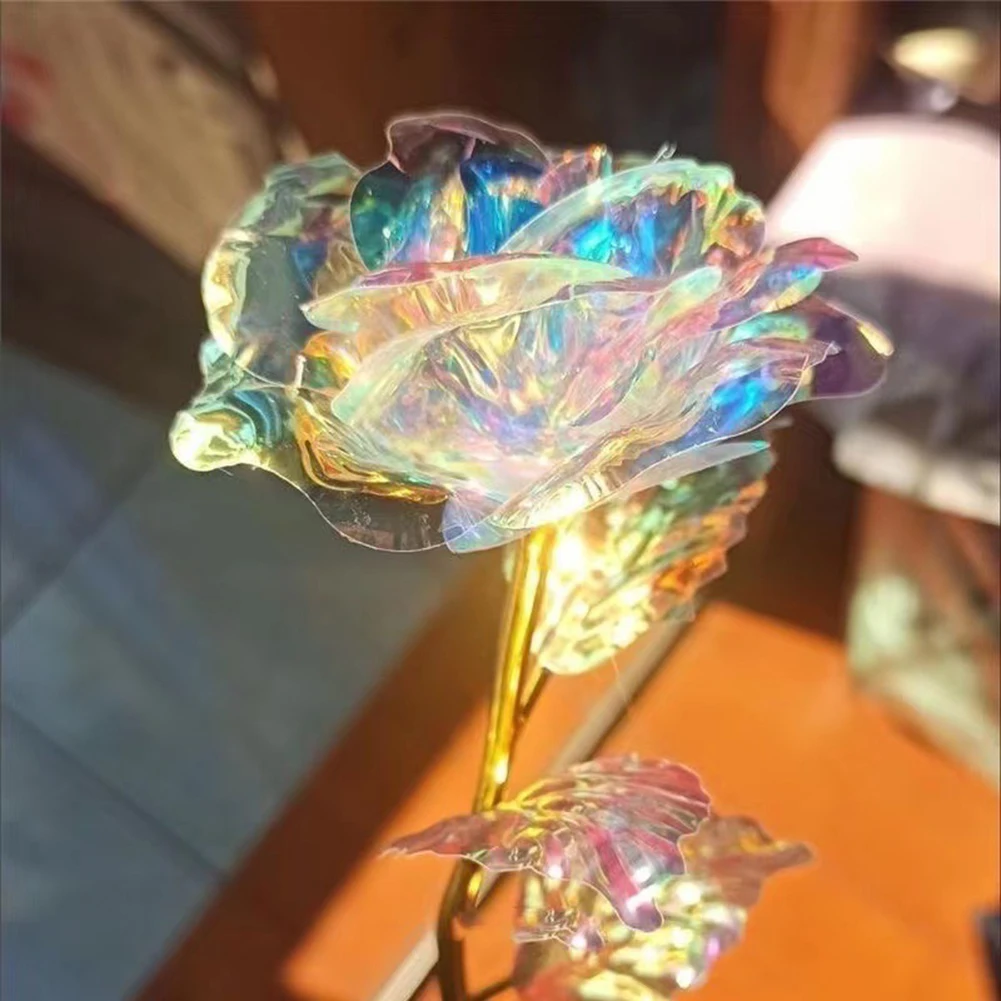 1pcs Eternal Galaxy Rose 24k Gold Flower Foil Plastic Artificial Roses Romantic Valentines Day Gift For Wedding Party Decor