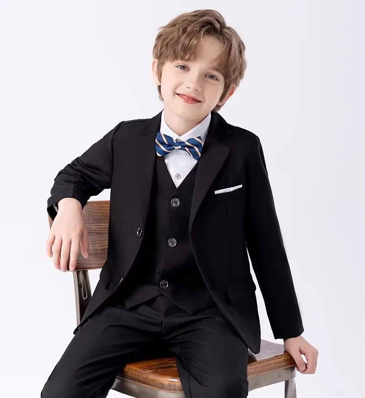 Children Black Wedding Suit Teenager Kids Piano Ceremony Tuxedo Dress Flower Boys Photograph Blazer Party Performance Costume