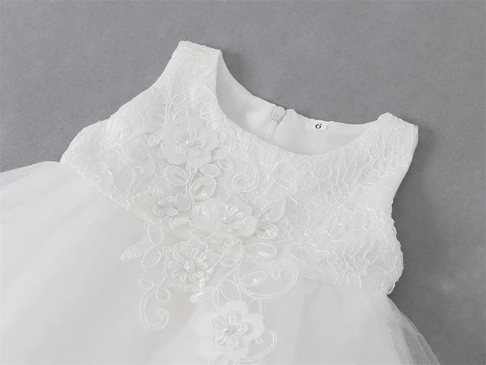 Infant Dress Gown Baby Girl Clothes Elegant Princess Dress For 1st Birthday Dress Children Baptismal Costume White Wedding Dress