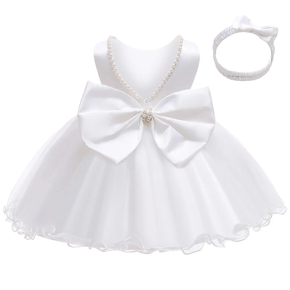 • Feature--infant baby toddler girl dress,FREE headband, Round and V neck Pearl Backless Big Bowknot, ruffle ball gown, Back Zip, Sleeveless, Gorgeous Dresses for Baby Toddler Princess Girls