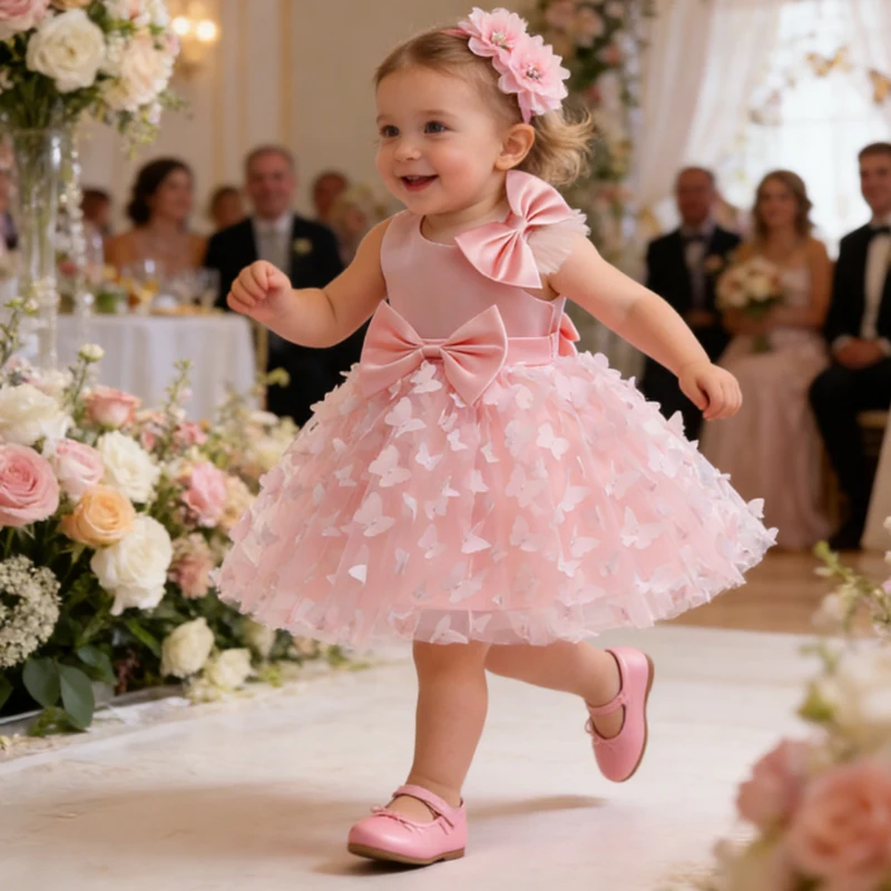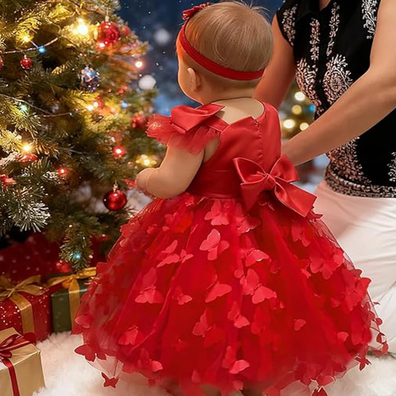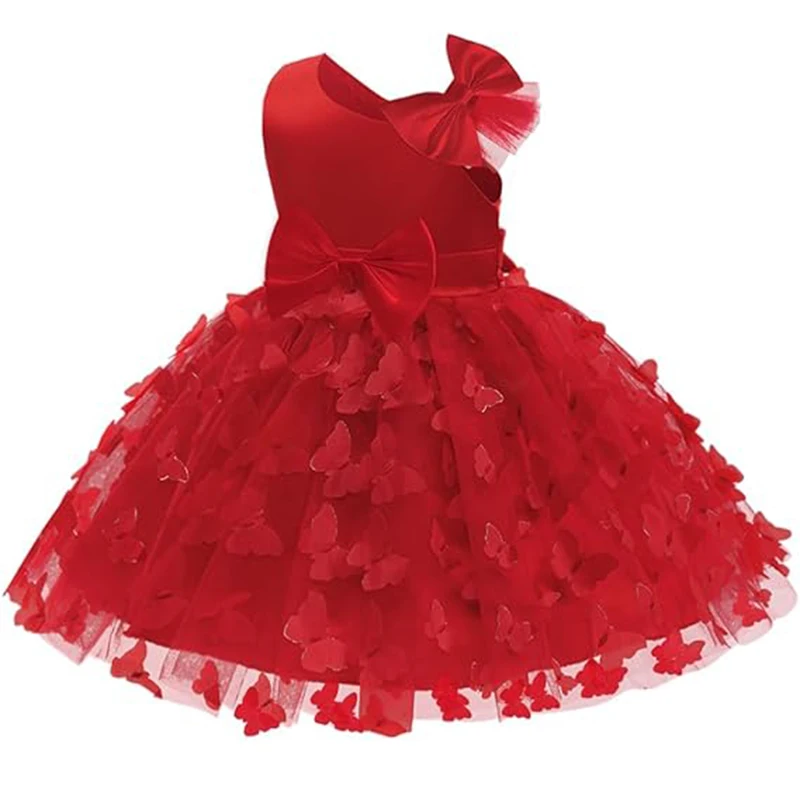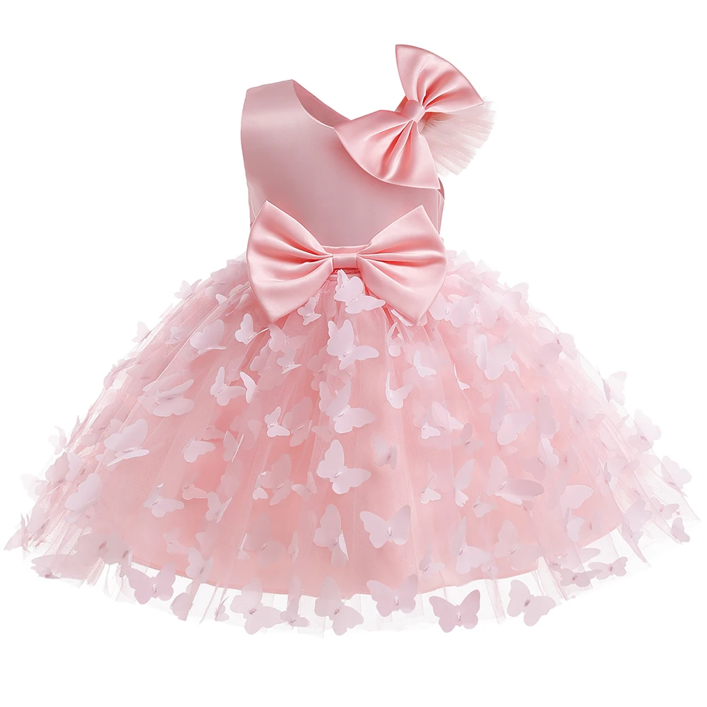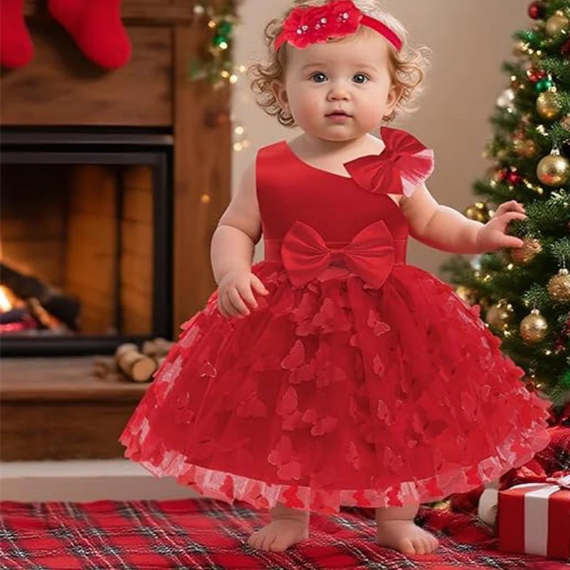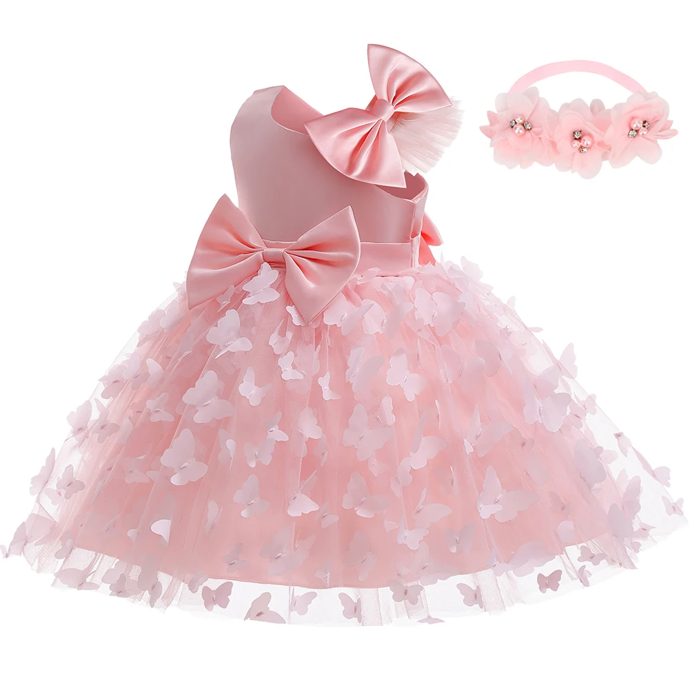 White Wedding Baby Girl Dress Bowknot Butterfly Tutu Dress Infant Toddler Flower Girls Baptism Birthday Dresses With Headband